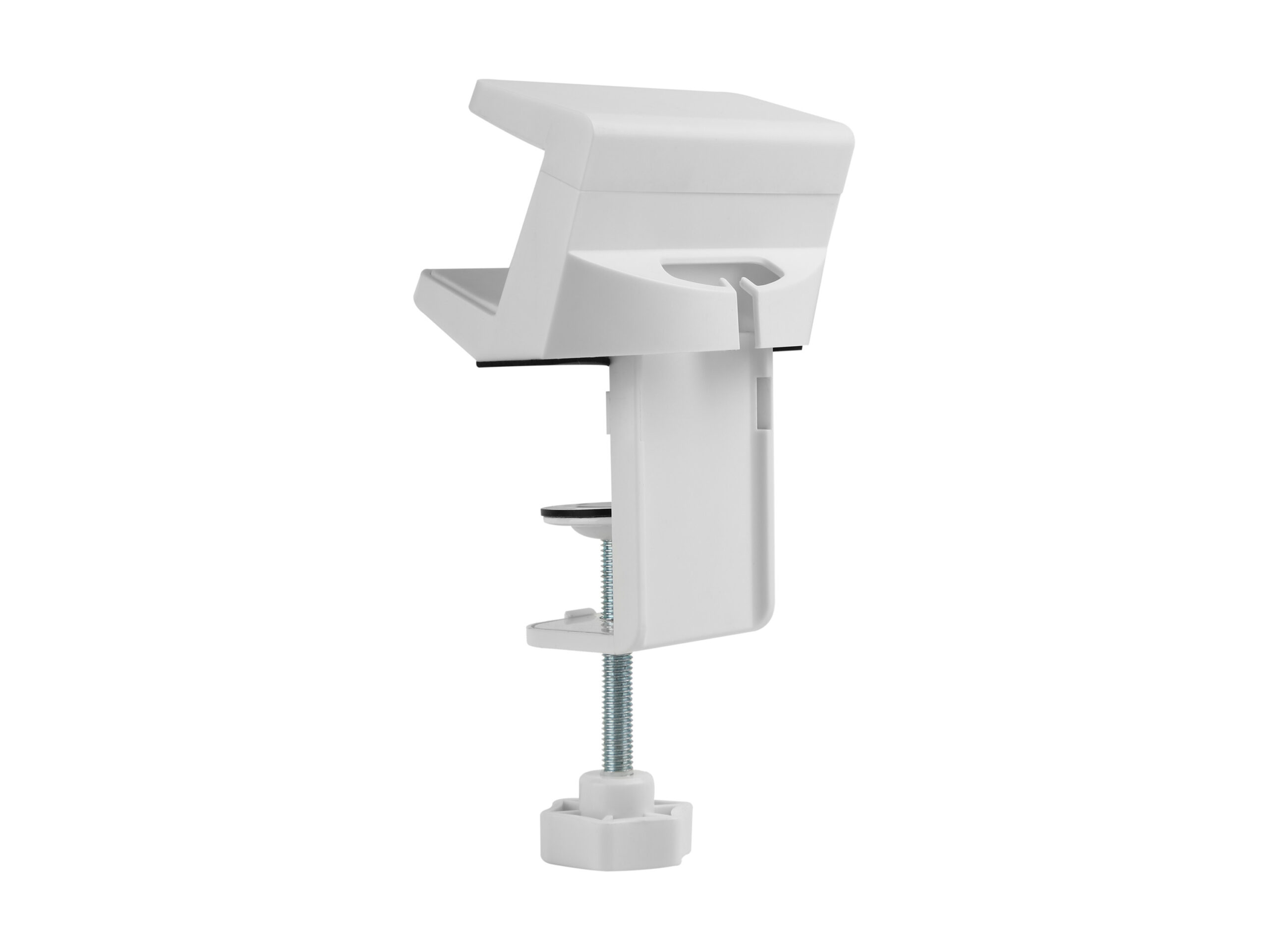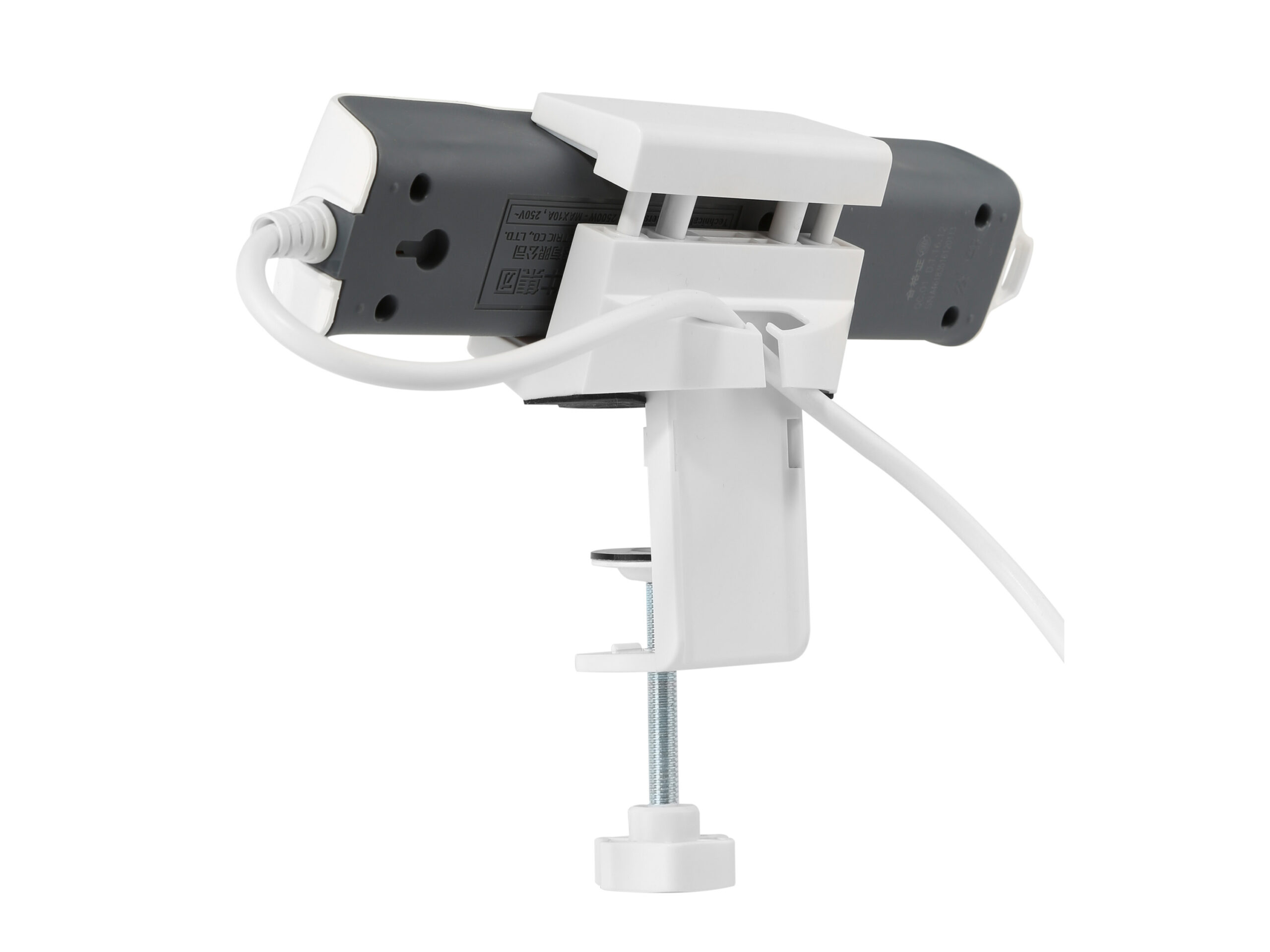 The equip® Clamp-On Power Strip Holder adjustable width accommodates most powerstrips from 40-60mm and it clamps easily to desks up to 50mm thick. EVA foam pads protect desktop surfaces from scratches or scuffs and silicon pads found in the mount hold your power strip firmly in place.