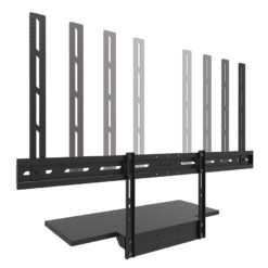 Voor optimale flexibiliteit zijn zowel het plateau als de achterplaatbeugels afzonderlijk in hoogte verstelbaar. Dankzij de variabele montagegaten en het verstelbare VESA-frame (200/400/600/800) kan de kit in zowel hoogte als breedte worden aangepast). De kit is geschikt voor montage op zowel wand- als vloersteunen. De installatie is snel en eenvoudig, met behulp van liniaal-geleide uitlijning voor een nauwkeurige en naadloze pasvorm.