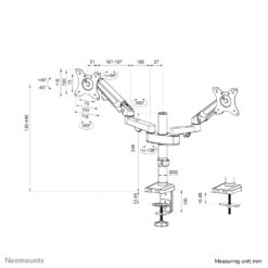 De Neomounts DS70-750BL2 is een full motion bureausteun voor twee flat screens tot 27 inch met een maximaal draagvermogen van 7 kg per scherm. Dankzij de veelzijdige kantel- (90°), roteer- (360°) en zwenktechnologie (180°) kan de bureausteun aangepast worden naar iedere gewenste kijkhoek en kan optimaal worden geprofiteerd van de mogelijkheden van de schermen. Bovendien beschikt de steun over gasgeveerde hoogteverstelling (7,3-48,1 cm) en diepteverstelling (0-37,8 cm) om de perfecte werkpositie te kunnen creëren.