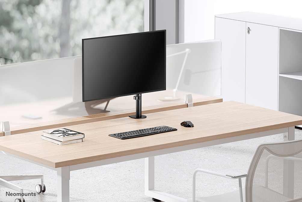 De Neomounts bureausteun, model FPMA-D540BLACK is een kantel-, zwenk- en roteerbare bureausteun voor monitoren tot 32 inch. Deze bureausteun wordt gemonteerd middels bureauklem of doorvoer en is daardoor een goede keuze bij het creëren van extra ruimte op het bureau.