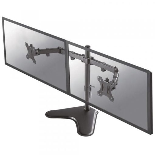 Met de Neomounts FPMA-D550DDBLACK monitorsteun plaatst u twee flatscreens op het bureau met een bureau standaard.