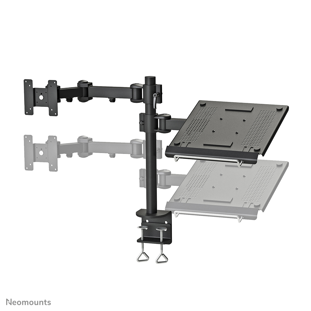 Met deze Neomounts monitorarm, model FPMA-D960NOTEBOOK, bevestigt u een flatscreen en notebook aan het bureau via een bureauklem.