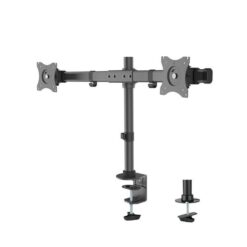 Met deze Neomounts monitorarm, model FPMA-DCB100DBLACK, bevestigt u twee flatscreens aan het bureau via een bureauklem of bureaudoorvoer. Beide montageopties worden standaard meegeleverd in de doos. Door gebruik te maken van een monitorarm profiteert u optimaal van de mogelijkheden van uw monitor. Deze crossbar monitorarm is handmatig in hoogte te verstellen. Tevens kunt u het scherm kantelen, zwenken en roteren. Hierdoor bepaart u ruimte op het bureau en creërt u een ergonomische werkhouding. Dit verkleint de kans op nek- en rugklachten. Met de kabelclips kunt u kabels netjes wegwerken. De FPMA-DCB100DBLACK heeft 1 draaipunt en is geschikt voor schermen t/m 27″ (69 cm). Het draagvermogen van de arm is 10 kg per scherm. Dit product is geschikt voor schermen met een VESA gatenpatroon van 75×75 mm of 100×100 mm. Heeft u een afwijkend (groter) gatenpatroon, dan kunt u dit oplossen met een van onze VESA verloopplaten.