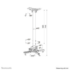 Neomounts CL25-550WH1 Full-motion beamer ceiling mount, 35 kg, White, Steel, 745 – 1145 mm, -8 – 8°