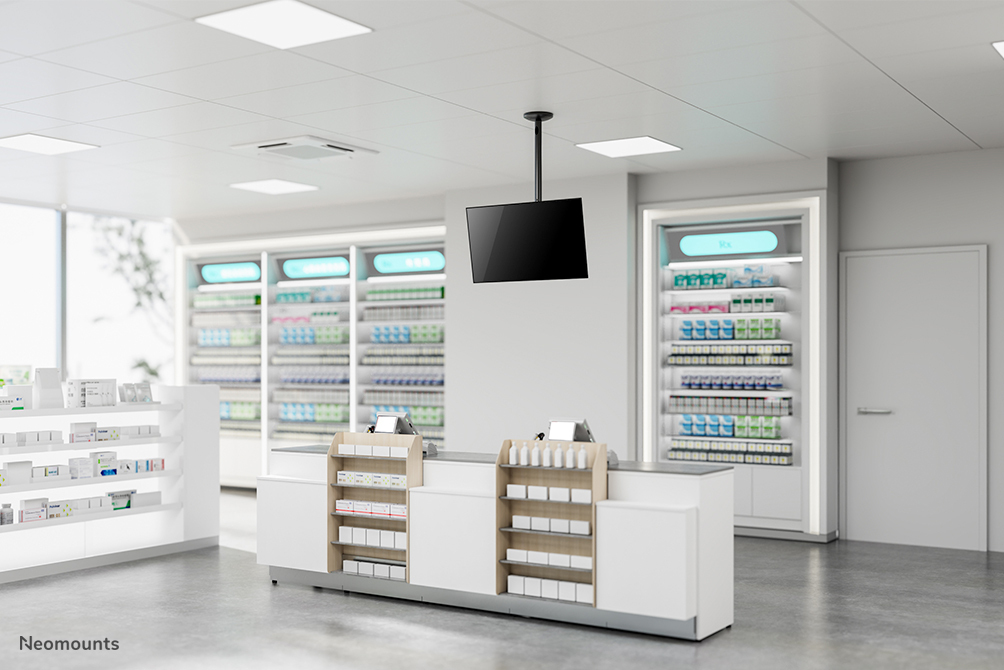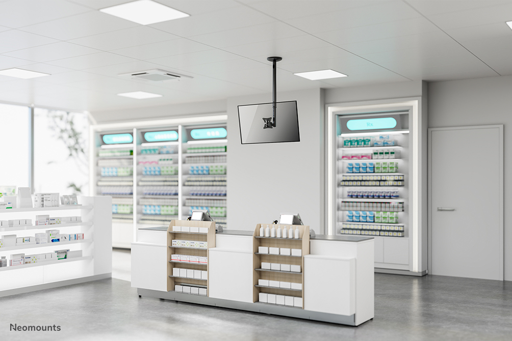 Met deze Neomounts plafondsteun, model FPMA-C050BLACK, bevestigt u een flatscreen aan het plafond.