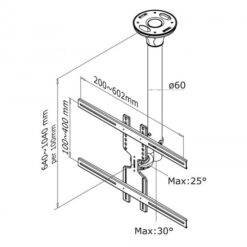 Neomounts CL35-440BL16XL TV ceiling mount, 200 x 200 mm, 600 x 400 mm, -25 – 0°, -180 – 180°, 3°
