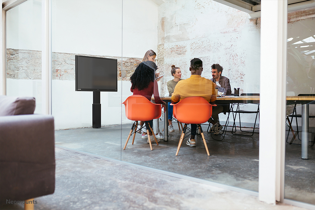 Met de Neomounts PLASMA-W2500BLACK plaatst u een groot formaat scherm op de vloer in bijvoorbeeld uw bedrijfsentree, klaslokaal, boardroom of presentatieruimte.