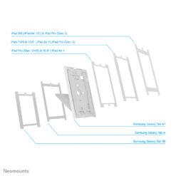 De Neomounts DS15-630WH1 is een tafelblad/wand tablethouder die 90° kan roteren zodat geschakeld kan worden tussen portrait en landscape oriëntatie. Het slimme ontwerp bevat zes verschillende tablet-inlegpanelen waardoor de tablethouder geschikt is voor diverse 9,7- 11 inch tablets*.