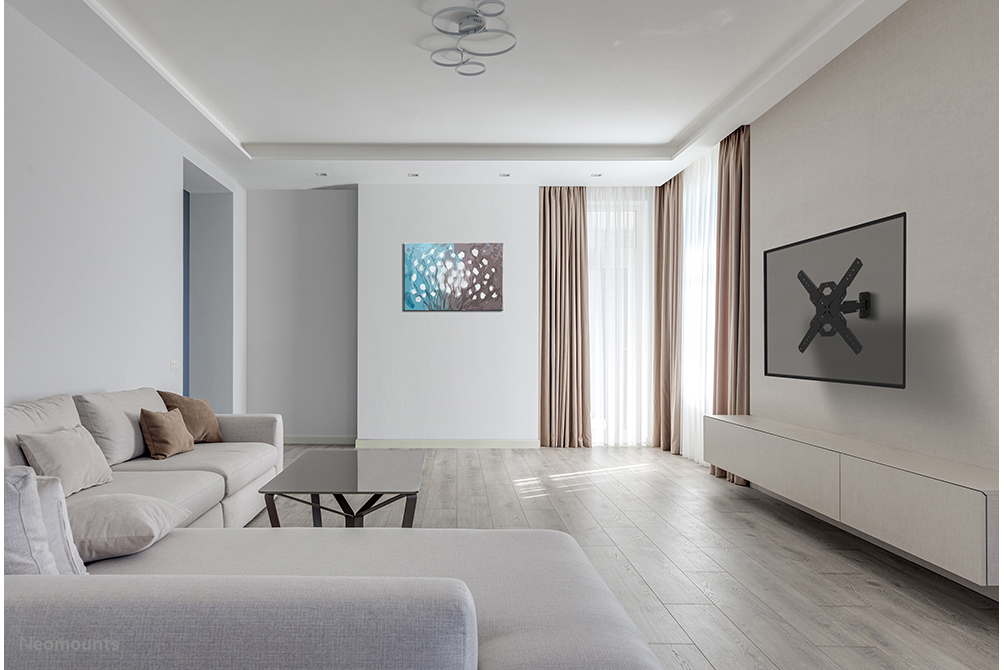 De Neomounts WL40S-840BL14 LEVEL is een full motion wandsteun voor flat screens tot 65 inch met een maximaal draagvermogen van 40 kg. Door de veelzijdige kantel- (14°) en zwenktechnologie (25°) creëer je de optimale kijkhoek. Voor de perfecte installatie is niveauverstelling beschikbaar.