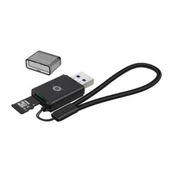 The TF/MicroSD 3.0 Card Reader provides reliable and efficient data transmission, supporting TF 3.0 and UHS-I with USB 3.0 transfer speeds up to 5Gbps. Its compact design, coupled with the included lanyard, ensures easy portability, making it an ideal companion for travel or everyday use.