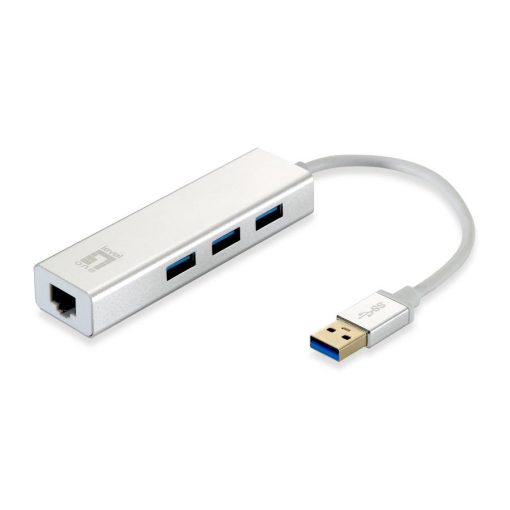LevelOne 54003007401 Gigabit USB Network Adapter, USB Hub, Wired, USB, Ethernet, 1000 Mbit/s, Silver