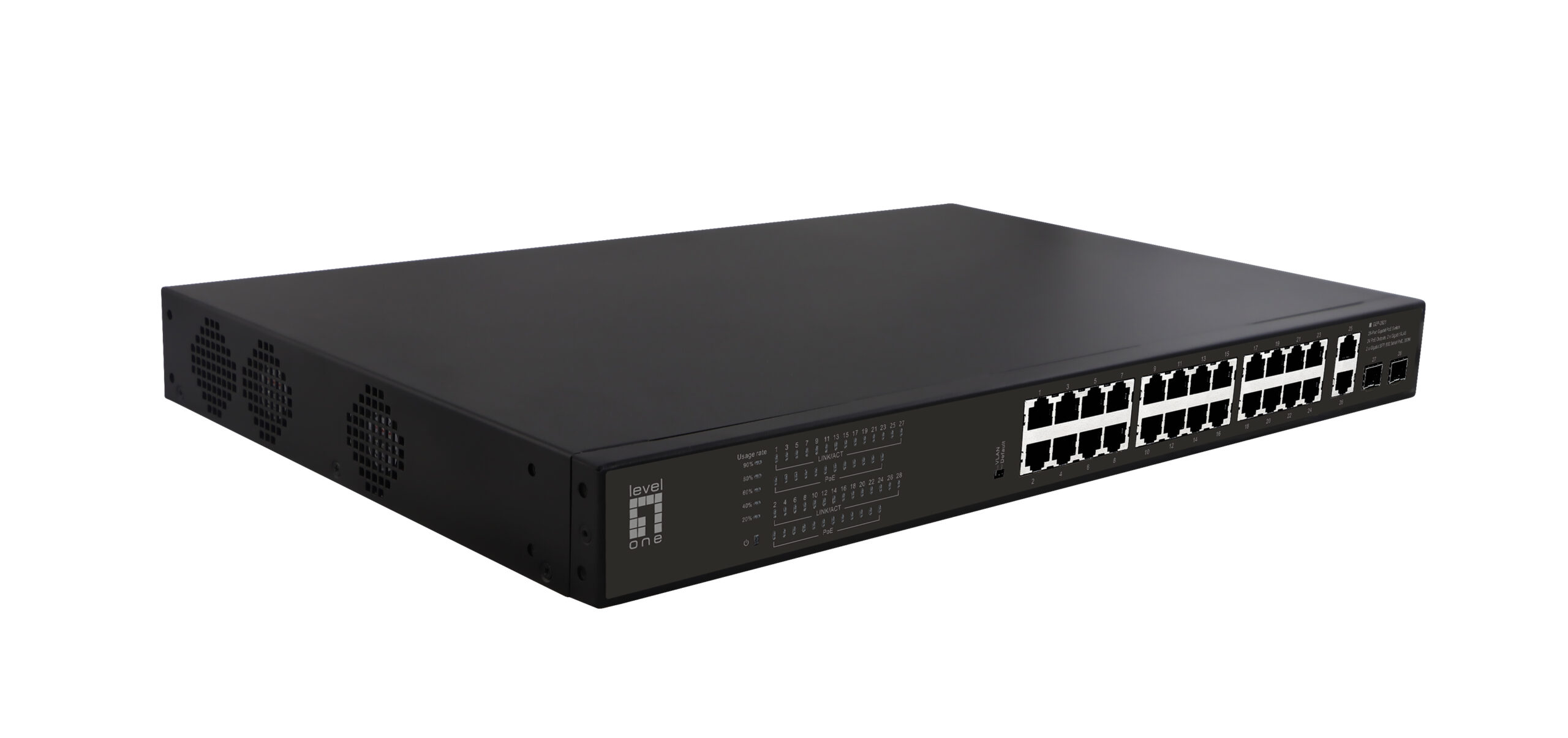 The GEP-2821 is LevelOne latest generation of 28-Port Gigabit Unmanaged PoE Switch, with 2 Gigabit RJ45 and 2 Gigabit SFP Uplink ports. also offers powerful DIP switch button configuration for VLAN mode and Default mode features. Switch that gives you a high-performance, low-cost, easy-to-use, seamless upgrade to boost your network to 1000Mbps. Increase the speed of your network backbone to a massive 56Gbps and bring Gigabit speeds all the way to your computers.