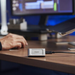 De XS2000 Draagbare SSD van Kingston gebruikt USB 3.2 Gen 2×2-snelheden om prestaties van de volgende generatie te leveren in een compacte, externe schijf. De XS2000 levert razendsnelle doorvoersnelheden tot 2.000MB/s* en maakt daarmee hogere productiviteit met weinig onderbrekingen mogelijk. De XS2000 biedt snelle opslagopties tot 4 TB** om razendsnel afbeeldingen met een hoge resolutie, 8K-video’s en grote documenten te offloaden en te bewerken. De schijf kan ook in de toekomst aan de opslagvereisten blijven voldoen en is direct compatibel met de meeste apparaten. Dankzij de USB Type-C®-aansluiting*** hebben contentmakers overal op een pc of mobiel apparaat toegang tot hun gegevens. De XS2000 wordt geleverd met een afneembare, verstevigde hoes en heeft een IP55-classificatie**** voor stof- en waterbestendigheid, waardoor de schijf perfect is voor fotoshoots op locatie, avonturen en andere werk- en privéprojecten.
