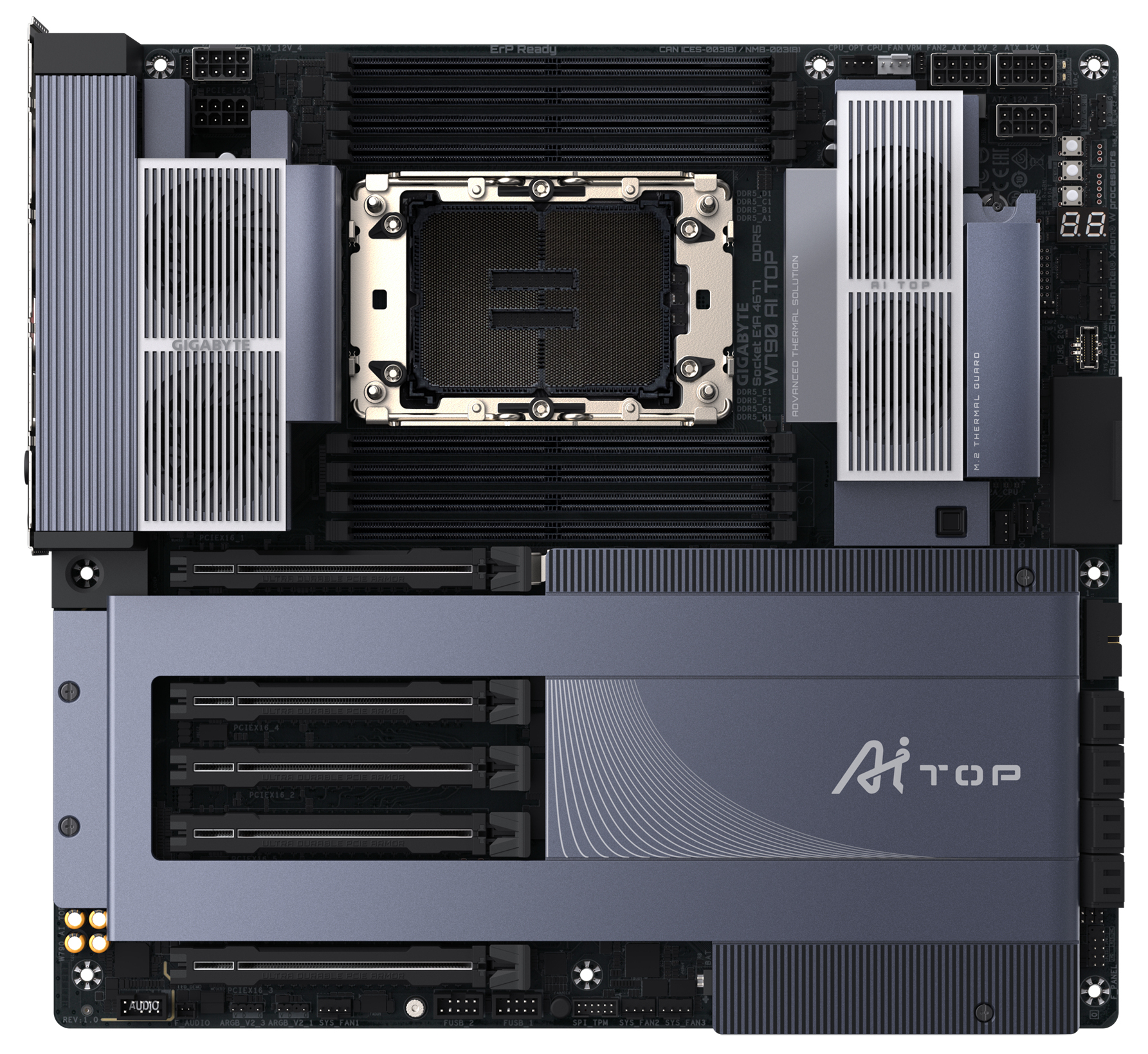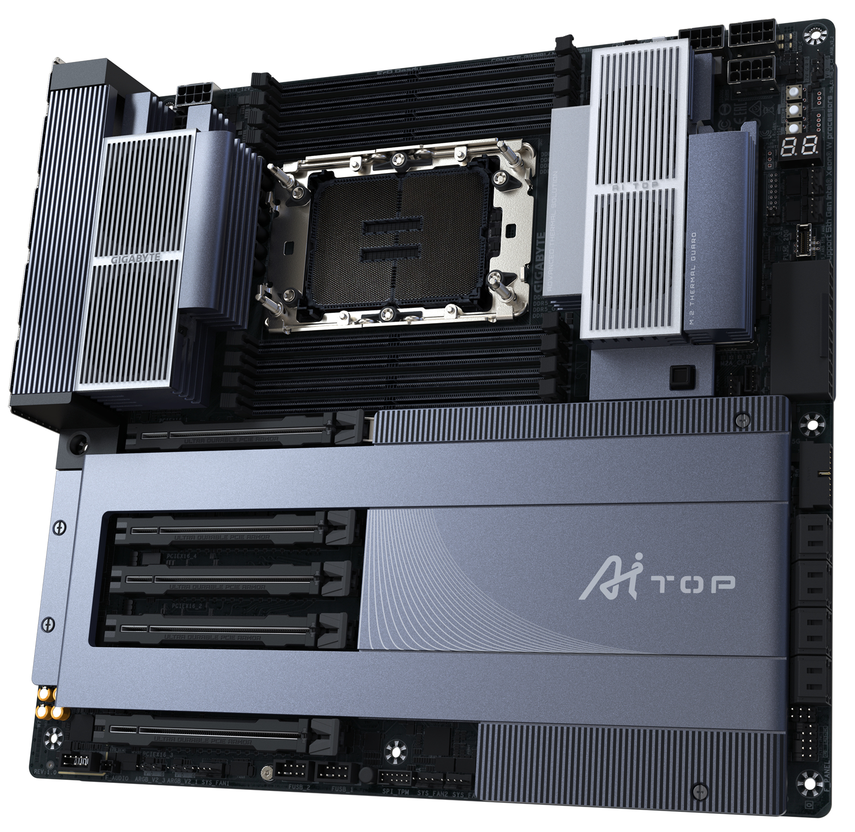 Gigabyte W790AI TOP, Intel 5th Gen Xeon® W, 8x DDR5, Dual 10GbE LAN & Wi-Fi 7, 5x PCIe 5.0, Black