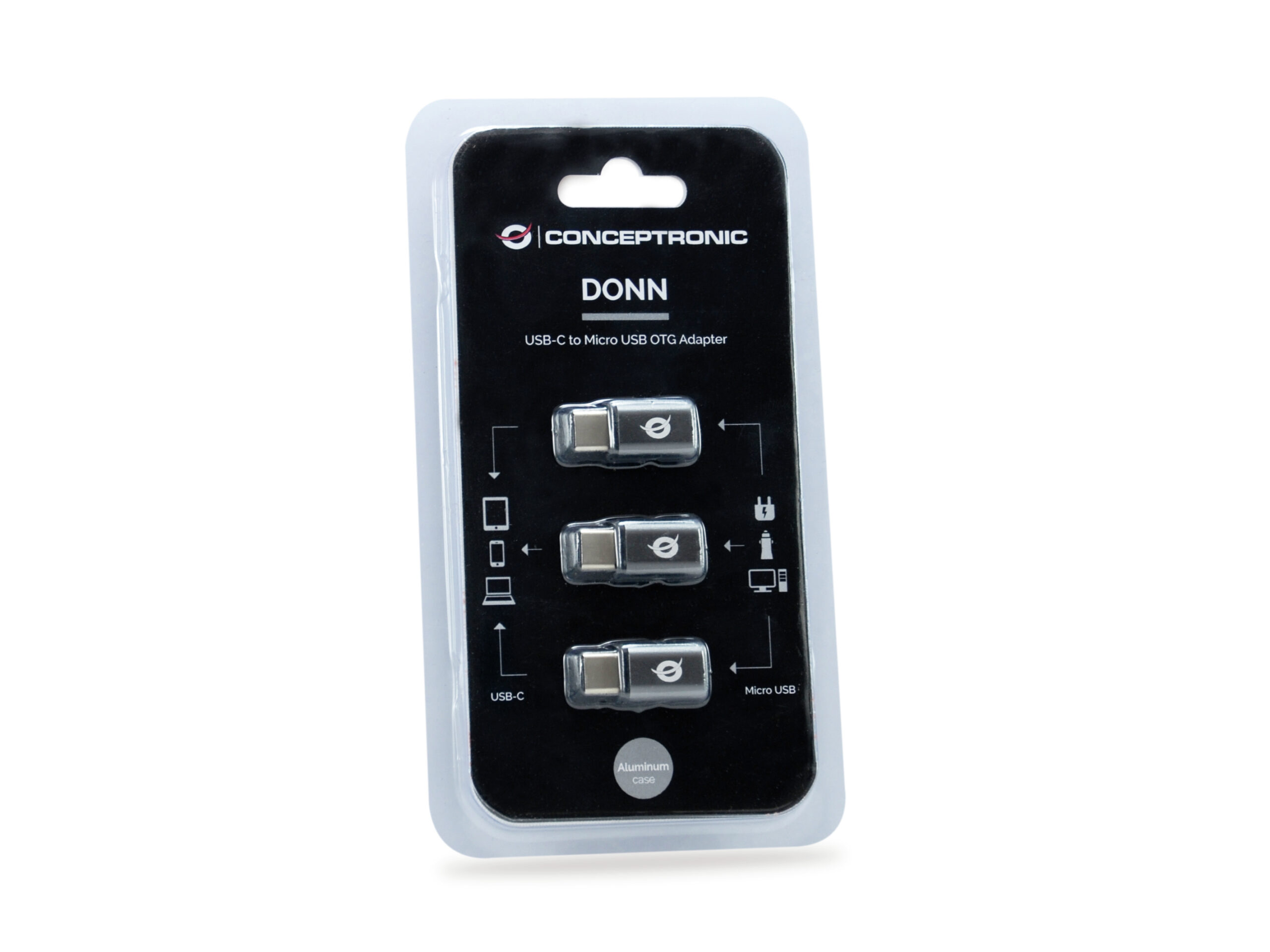 Conceptronic DONN05G DONN USB-C to Micro USB OTG Adapter 3-Pack, USB 2.0 Type-C, USB 2.0 Micro