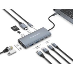 Conceptronic 110515507201 DONN06G 10-in-1 USB 3.2 Gen 1 Docking Station, HDMI, 2x USB-C 5Gbps, 100W