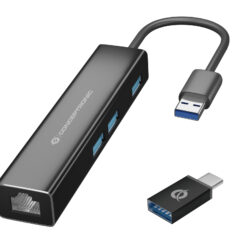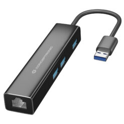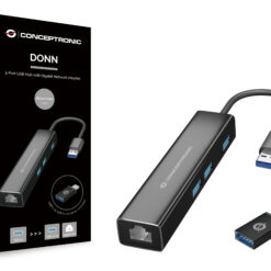 Conceptronic DONN07BA USB 3.2 Gen 1 Type-A, 10,100,1000 Mbit/s, Black, RJ45, USB 3.2 Gen 1 Type-A