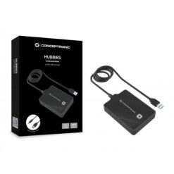 Conceptronic HUBBIES11B HUBBIES 4-Port USB 3.0 HUB, 90cm cable, USB 3.2 Gen 1 Type-A, Black