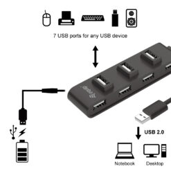 Equip 12895707101 7-Port USB 2.0 Hub, USB 2.0, USB 2.0, 480 Mbit/s, Black, CE, RoHS