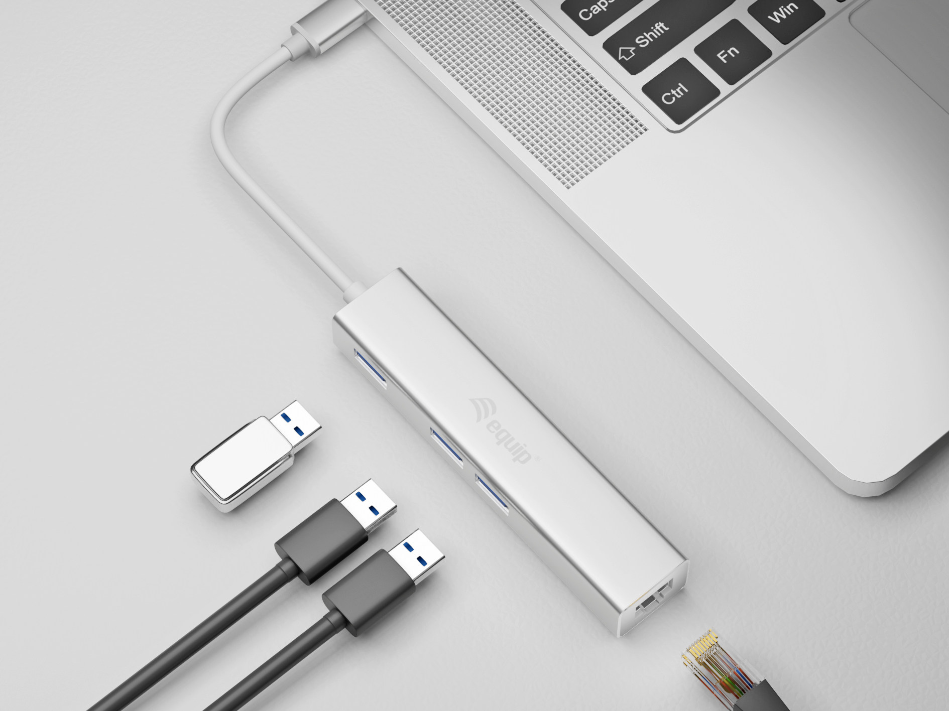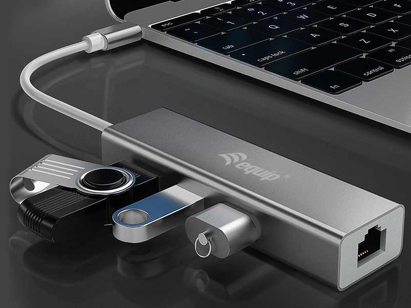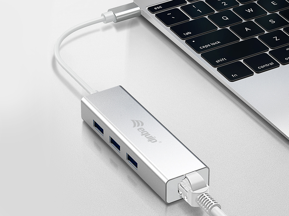 Equip 13348107101 USB-C to 3-port USB 3.0 Hubs with Gigabit adapter, USB 3.2 Gen 1, USB Type-A, WLAN