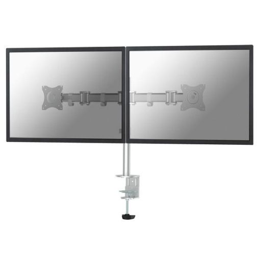Met deze Neomounts monitorarm, model NM-D135DSILVER, bevestigt u twee flatscreens aan het bureau via een bureauklem.