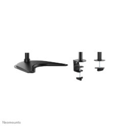 Met deze Neomounts monitorarm, model NM-D335DBLACK, bevestigt u twee flatscreens aan het bureau via een bureauklem, bureaudoorvoer of bureauvoet. Alle montageopties worden standaard meegeleverd in de doos.
